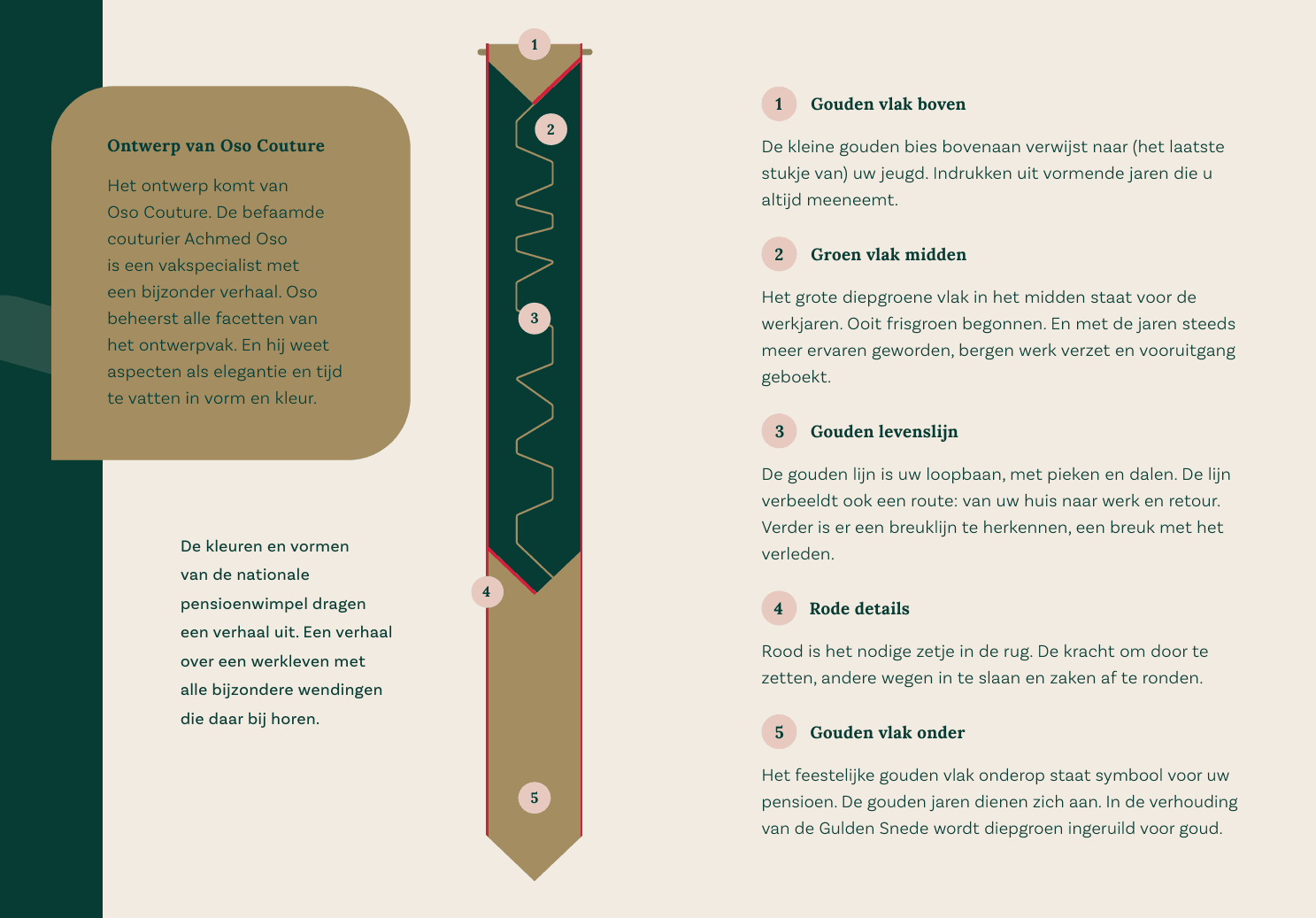 De nationale pensioenwimpel draagt een verhaal uit. Een terugblik op een werkleven met bijzondere wendingen. Een verhaal over doorzettingsvermogen, persoonlijke ontwikkeling en veerkracht.